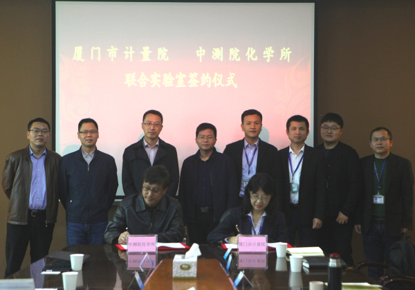 3月12日,我院化學(xué)研究所與廈門市計量檢定測試院(以下簡稱廈門市計量院)“聯(lián)合實驗室”簽約儀式在廈門舉行,方正所長與廈門市計量院蔣淑戀院長分別代表兩家機(jī)構(gòu)簽署了合作協(xié)議并為“聯(lián)合實驗室”揭牌。我院楊杰斌副院長、科技處孫登峰處長以及廈門市質(zhì)監(jiān)局計量處李毅龍?zhí)庨L等出席了簽約儀式。