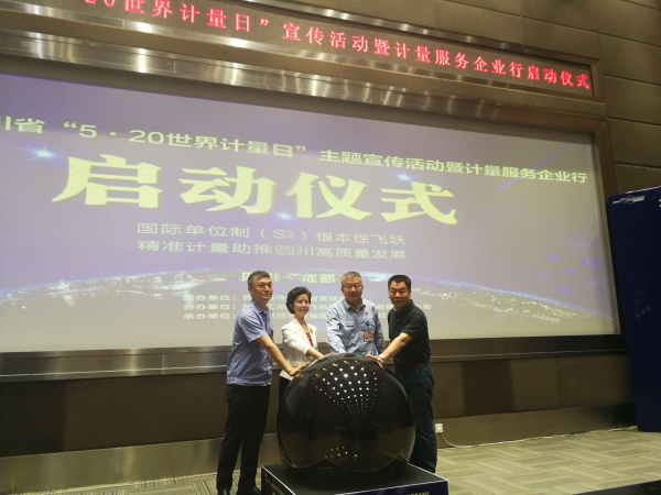 我院陳旭東副院長與四川省市場監(jiān)督管理局和航空工業(yè)成都飛機工業(yè)(集團)有限責任公司的領(lǐng)導一起共同啟動了2019年四川省“5·20世界計量日”主題宣傳活動暨計量服務企業(yè)行活動。航空工業(yè)成都飛機工業(yè)(集團)有限責任公司領(lǐng)導在啟動儀式上發(fā)出精準計量助推四川高質(zhì)量發(fā)展的倡議;四川省市場監(jiān)督管理局茍小蘭副局長作了國際單位制根本性飛躍主題發(fā)言。