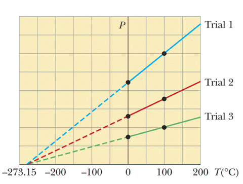 理想氣體的等容和等壓的延長線都交于一點,即在溫度坐標軸的t=-273.15℃處,如右圖所示。熱力學溫標給出了絕對零度為-273.15℃的概念,也稱絕對溫標。熱力學溫標的起點為絕對零度。