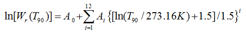 平衡氫三相點(13.8033K)到銀的凝固點(961.78℃)之間,T90用鉑電阻溫度計來定義。它使用一組規(guī)定的定義固定點和規(guī)定的參考函數(shù)以及內(nèi)插溫度的偏差函數(shù)來分度。